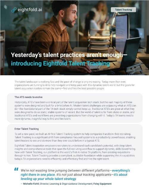 Datasheet Yesterday’s talent practices aren’t enough— introducing Eightfold Talent Tracking Read Datasheet